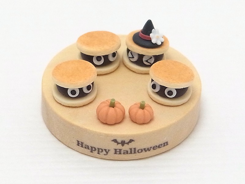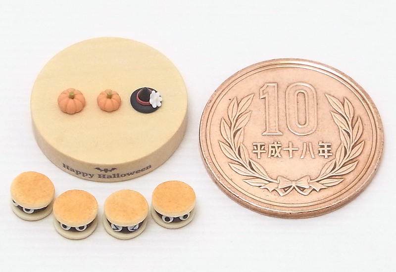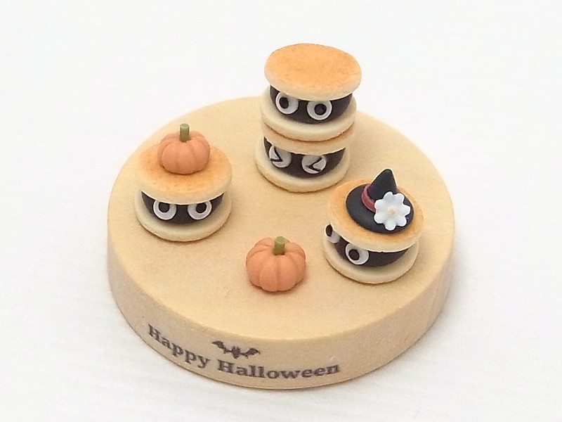 モンスターパンケーキ 2025.10.302025.10.28 ハロウィン仕様のミニチュアパンケーキセットです。樹脂粘土等を使用して制作しました。モンスターパンケーキ・かぼちゃ・魔女の帽子、すべて未接着ですので自由にディスプレイできます。 【サイズ】 ・パンケーキ:直径0.55cm ・円形台:直径2.0cm×高さ0.4cm